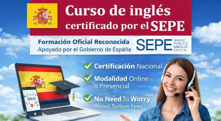 ¿Quieres mejorar tu inglés y avanzar profesionalmente sin complicaciones? Con el Curso de inglés certificado por el SEPE obtienes certificación oficial, respaldada por el gobierno, en modalidad online o presencial. No hay necesidad de preocuparse por las tasas de matrícula y no se requiere experiencia previa. Aprende a tu ritmo, desarrolla habilidades reales para el trabajo y abre nuevas oportunidades laborales desde hoy.