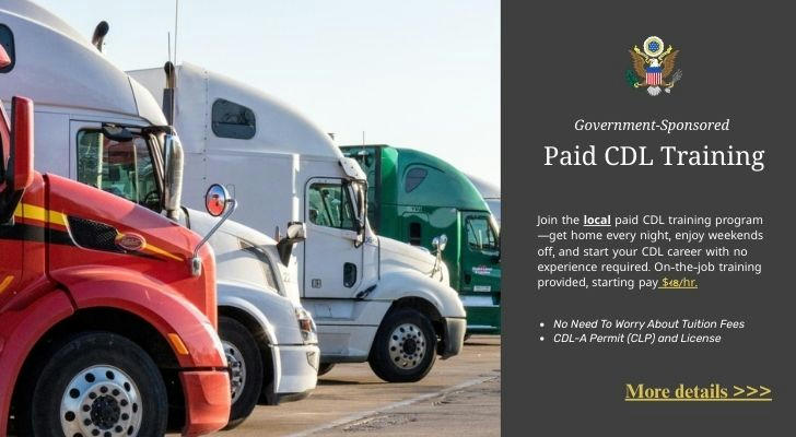 Through paid CDL training and Government-sponsored CDL Programs, individuals can enter the commercial driving industry with official instruction, nationally recognized certification, and beginner-friendly training routes. (No Need To Worry About Tuition Fees)